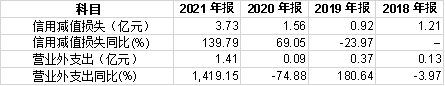 表二:招商证券2018-2021年信用减值及营业外支出情况