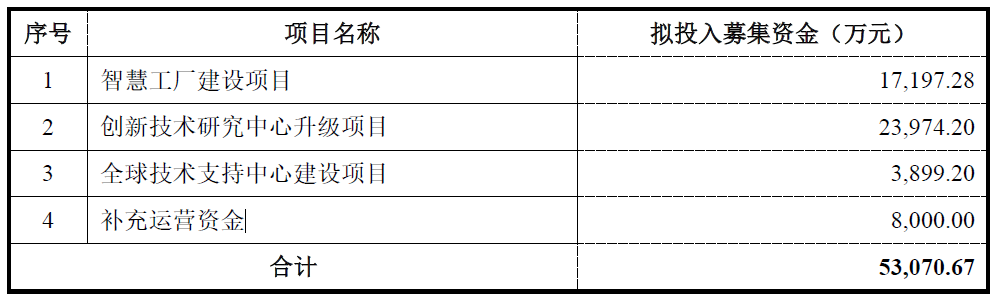 蓝岸科技原拟在深交所创业板公开发行不超过3,400万股,占发行后总股本的比例不低于25%。公司原拟募集资金53,070.67万元,分别用于智慧工厂建设项目、创新技术研究中心升级项目、全球技术支持中心建设项目、补充运营资金。