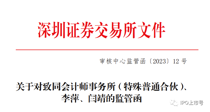 2022 年 9 月 30 日,本所受理了深圳市大成精密设备股份有限公司(以下简称发行人)首次公开发行股票并在创业板上市的申请。中国证监会对发行人开展了现场检查,经查明,致同会计师事务所(特殊普通合伙)(以下简称致同所)作为项目申报会计师,李萍、闫靖作为项目签字注册会计师,存在以下违规行为: