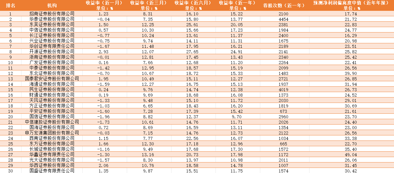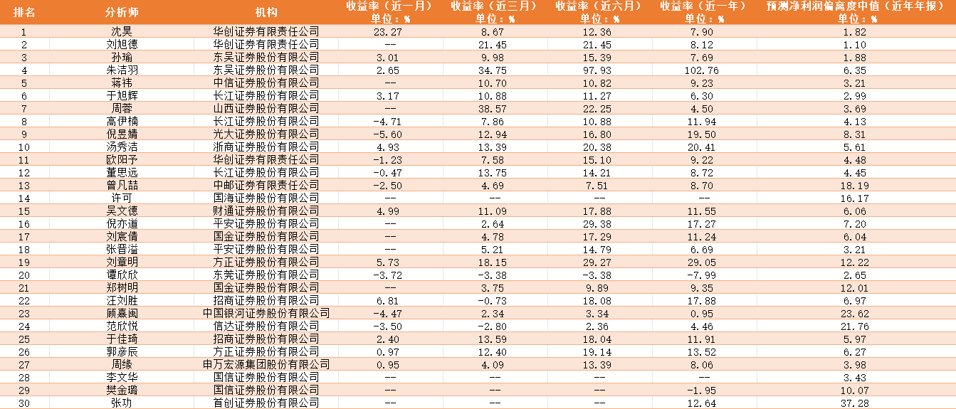 分析师实力榜前30名