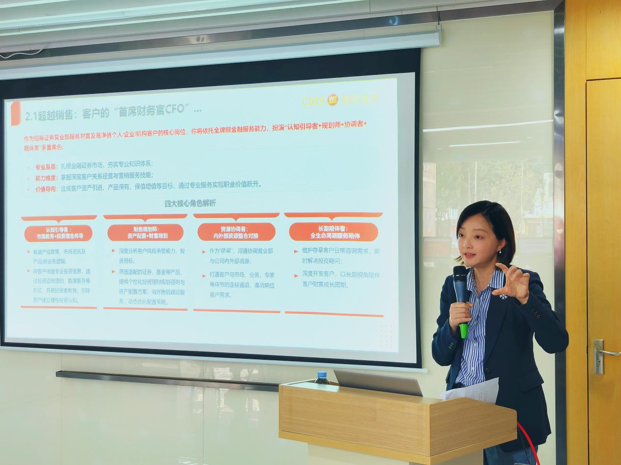 授课中,辛欣深入剖析财富管理行业从高速增长向高质量发展转型的核心驱动力,指出在客户需求多元化、全球资产配置加速推进的行业趋势下,财富顾问角色正逐步从产品销售者向客户的“专属财富管家”转型,肩负起认知引导、财务规划、资源协调、长期陪伴等多重职责。围绕“如何成为优秀财富顾问”,她系统拆解职业能力模型:硬技能层面,需夯实金融证券专业知识,考取从业资格等专业认证;软实力层面,要具备深度客户关系经营、沟通协作、资源整合等综合能力,以专业服务助力客户实现资产引进、产品保有及保值增值目标,达成自身职业价值跃升。