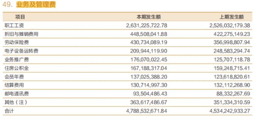 回顾今年上半年, 招商证券 保持了营收、净利增长的同时,营业支出也随之增长。期内,其实现业务及管理费47.88亿元,同比增长5.61%。其中,职工工资26.31亿元,同比增长4.15%。
