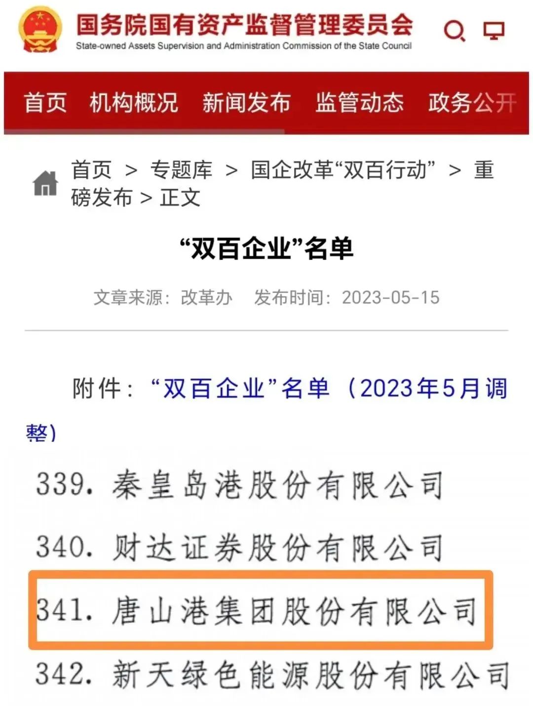 日前,国务院国资委公布最新一轮“双百企业”入选名单,唐山港集团股份有限公司成功入围。