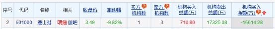 龙虎榜数据显示,买入唐山港金额最大的前5名中,1家为机构专用席位。卖出唐山港金额最大的前5名中,3家为机构专用席位。经统计,机构席位今日卖出唐山港净额为16614.28万元。