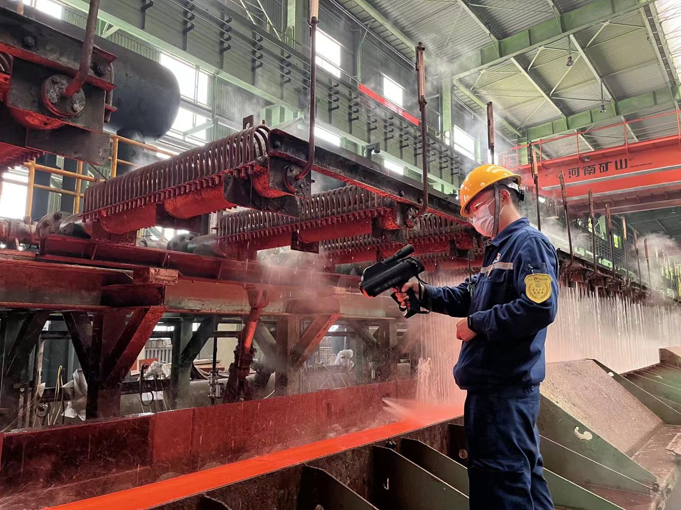 ▲重庆钢铁生产人员正在进行覆铜钢冷却跟踪测试。企业供图