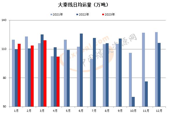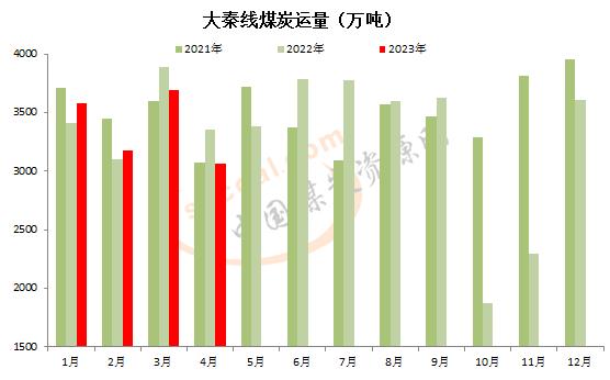 2023年1-4月,大秦线累计完成货物运输量13513万吨,同比下降1.72%,不过增幅较前三月扩大1.13个百分点。