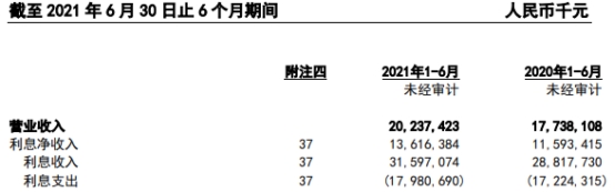 2021年上半年,南京银行实现利息净收入136.16亿元,同比增加20.23亿元,增幅17.45%。其中,利息收入为315.97亿元,同比增长9.64%;利息支出为179.81亿元,同比增长4.39%。