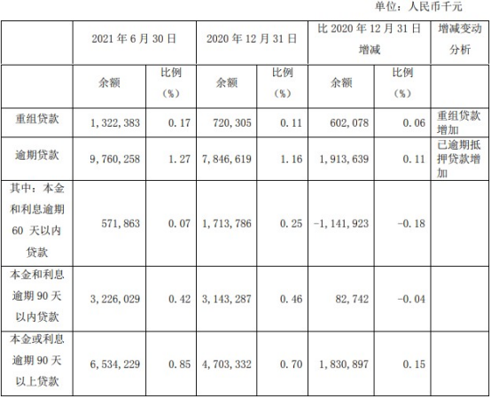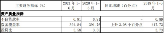今年上半年,南京银行的不良贷款余额增加。截至2021年6月30日,南京银行不良贷款余额69.81亿元,较上年末增加8.07亿元;不良贷款率0.91%,与上年末持平;拨备覆盖率394.84%,较上年末上升3.08个百分点。