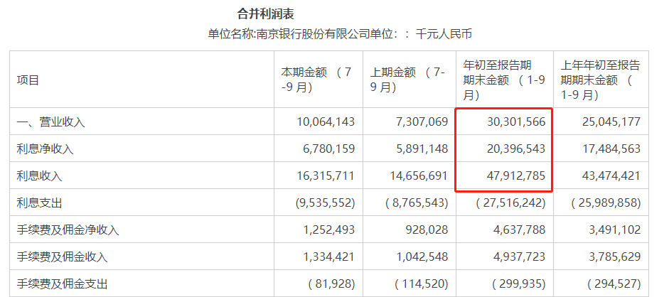 前三季度南京银行实现营业收入超300亿元,较上年同期增加50多亿元,增幅近21%;实现归母净利润123.44亿元,同比增幅超过20%。