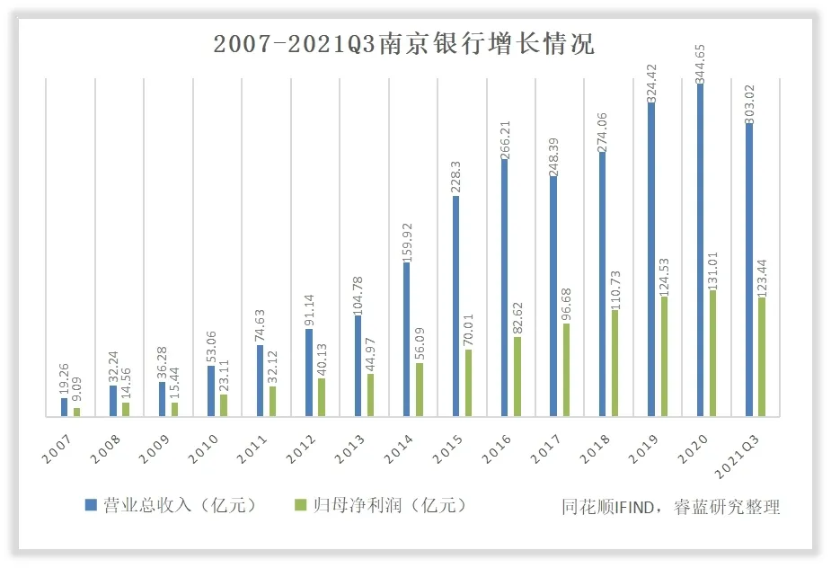 观察上市以来南京银行的发展情况,2007-2015年期间,公司收入年复合增长率为36.22%、利润复合增长率为29.07%,2014年收入增长速度一度超过50%。