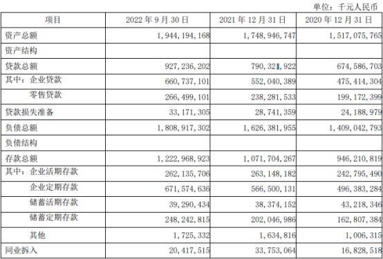 截至报告期末,南京银行资产总额19,441.94亿元,较年初增加1,952.47亿元,增幅11.16%;负债总额18,089.17亿元,较年初增加1,825.35亿元,增幅11.22%;存款总额12,229.69亿元,较年初增加1,512.65亿元,增幅14.11%;贷款总额9,272.36亿元,较年初增加1,369.14亿元,增幅17.32%。