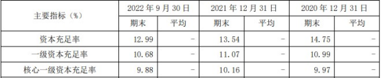 南京银行的资本充足率指标下滑。截至2022年9月30日,南京银行资本充足率为12.99%,上年末为13.54%;一级资本充足率为10.68%,上年末为11.07%;核心一级资本充足率为9.88%,上年末为10.16%。