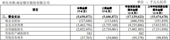 今年前三季度,南京银行计提信用减值损失74.02亿元,上年同期为72.11亿元,同比增长2.65%。