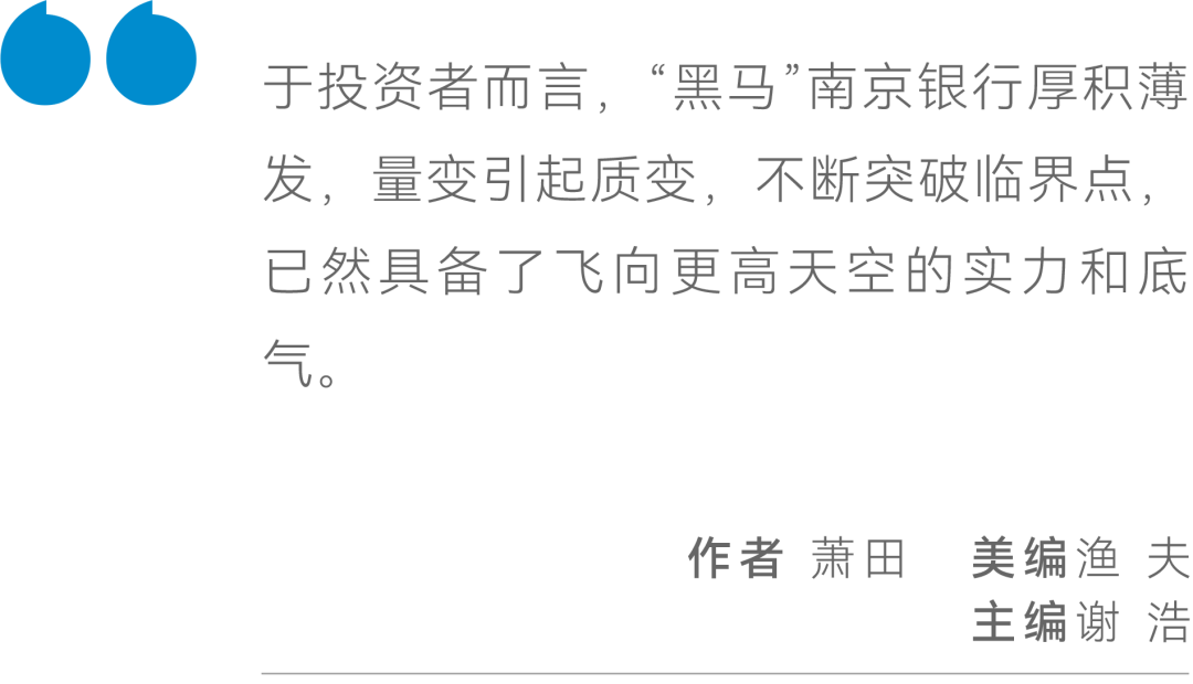 于投资者而言,“黑马”南京银行厚积薄发,量变引起质变,不断突破临界点,已然具备了飞向更高天空的实力和底气。