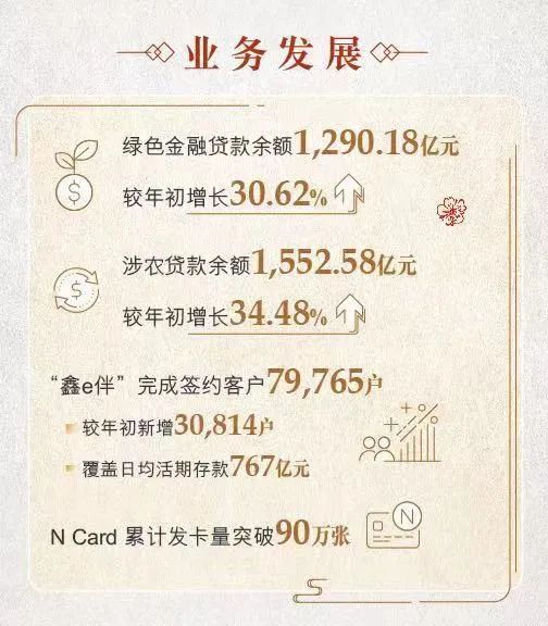 截至9月末,南京银行在全行制造业、绿色金融、普惠、涉农贷款余额分别达到991亿、1290亿、865亿和1553亿元,较上年末增长17%、31%、32%和34%。