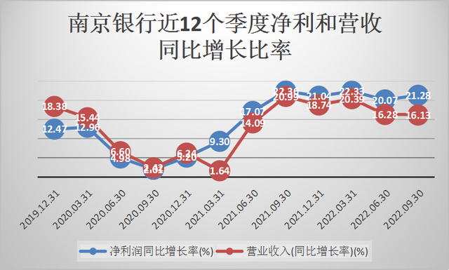 1、南京银行的净利指标自从2021年三季度登上20%以上以后,就一直没有跌到20%以下。尽管2022年这大半年被公认为经济下行压力增大期间,它的净利润同比增长率始终都没有低于20%以下。