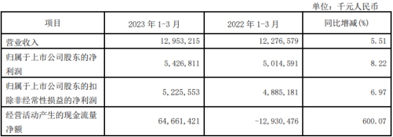 2023年第一季度报告显示,报告期内,南京银行实现营业收入129.53亿元,同比增长5.51%;实现归属于上市公司股东的净利润54.27亿元,同比增长8.22%;实现归属于上市公司股东的扣除非经常性损益的净利润52.26亿元,同比增长6.97%;经营活动产生的现金流量净额为646.61亿元,上年同期为-129.30亿元。