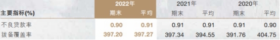 截至2022年末,南京银行不良贷款总额85.16亿元,上年同期为72.33亿元;不良贷款率0.90%,较年初下降0.01个百分点;拨备覆盖率397.20%,上年末为397.34%。