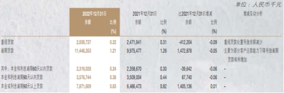 截至报告期末,公司逾期贷款金额114.48亿元,较上年末增长14.73亿元,逾期贷款占比1.21%,较上年末下降0.05个百分点。