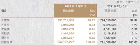 2022年末,公司资产总额达到20,594.84亿元,较上年末增加3,105.37亿元,增幅17.76%;贷款总额9,459.13亿元,较上年末增加1,555.91亿元,增幅19.69%;负债总额19,017.85亿元,较上年末增加2,754.03亿元,增长16.93%;存款总额12,380.32亿元,较上年末增加1,663.27亿元,增幅15.52%。