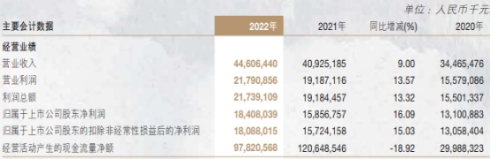 南京银行(601009.SH)近日公布了2022年年度报告。2022年,南京银行实现营业收入446.06亿元,同比增长9.00%;实现归属于母公司股东的净利润184.08亿元,同比增长16.09%;实现归属于上市公司股东的扣除非经常性损益后的净利润180.88亿元,同比增长15.03%;经营活动产生的现金流量净额为978.21亿元,同比减少18.92%。
