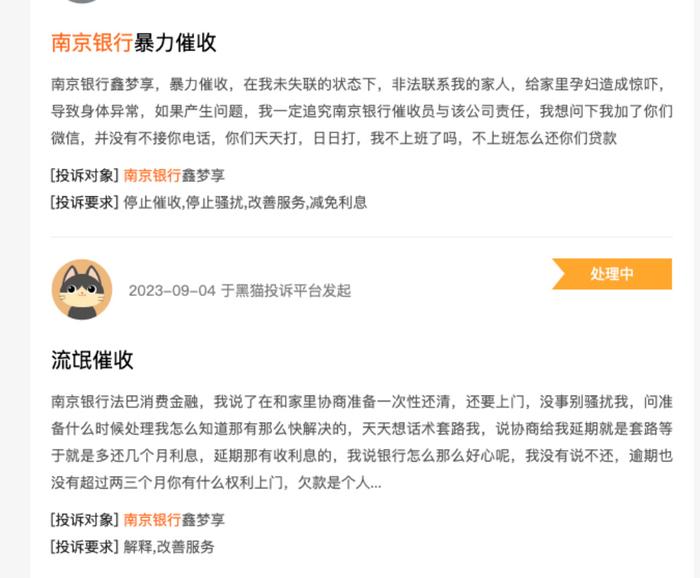 其中绝大多数投诉对象是南京银行旗下的“你好e贷”和“鑫梦享”的业务,这2者都是面向社会上消费者的消费信贷业务,而这些业务频频被投诉“砍头息、高利贷”等违规问题。