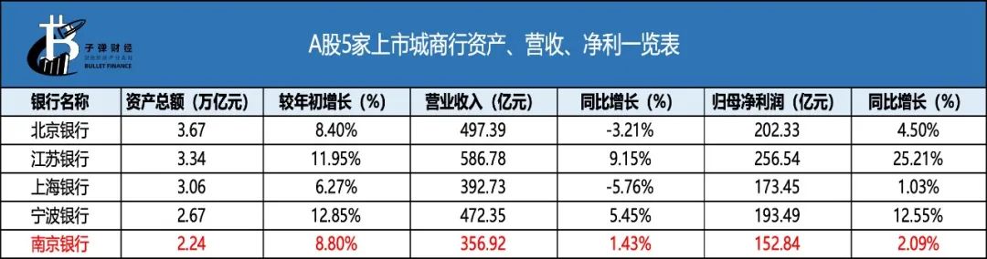 巧合的是,南京银行上述营收和归母净利润的表现在国内上市城商行中均是排名第五。