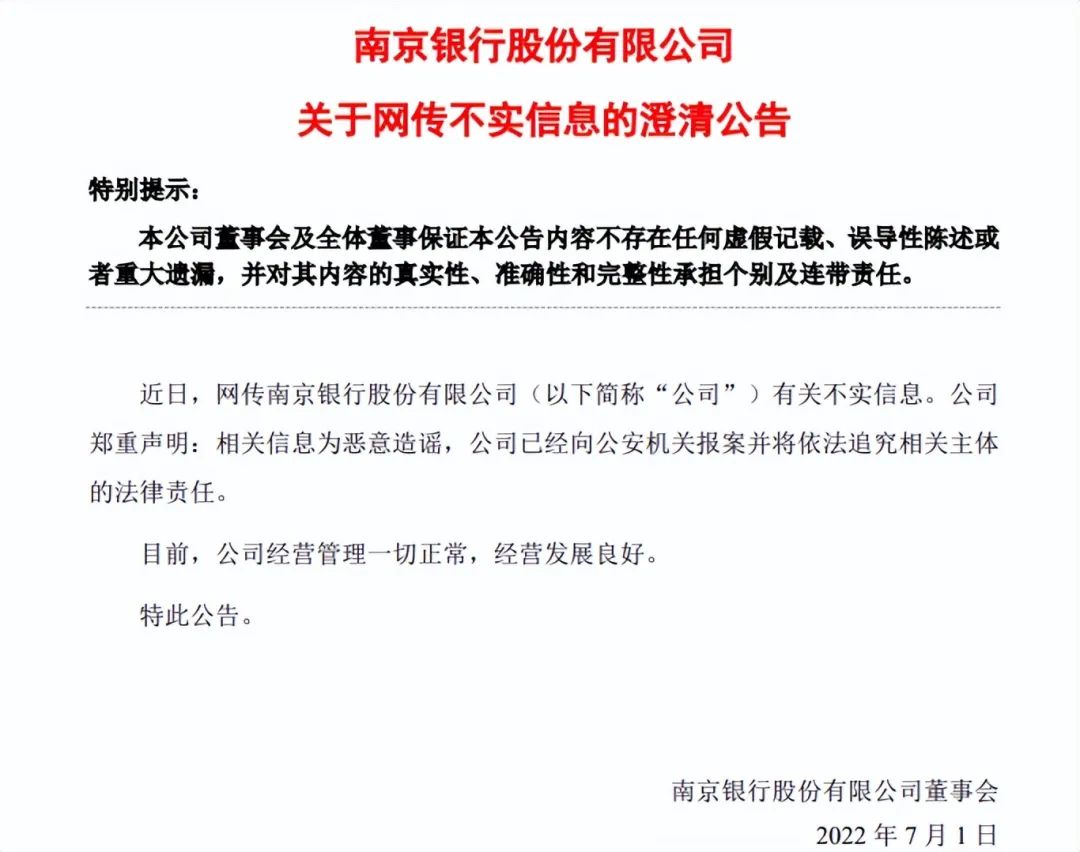 当时券商首席分析师群聊传出一些消息,南京银行及时辟谣。