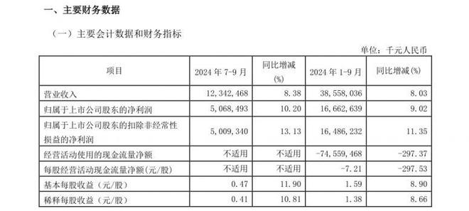 近日,南京银行发布2024年第三季度报告,报告显示,2024年前三季度,公司实现营业收入385.58亿元,较上年同期增长8.03%,其中,实现归属于上市公司股东净利润166.63亿元,较上年同期增长9.02%。