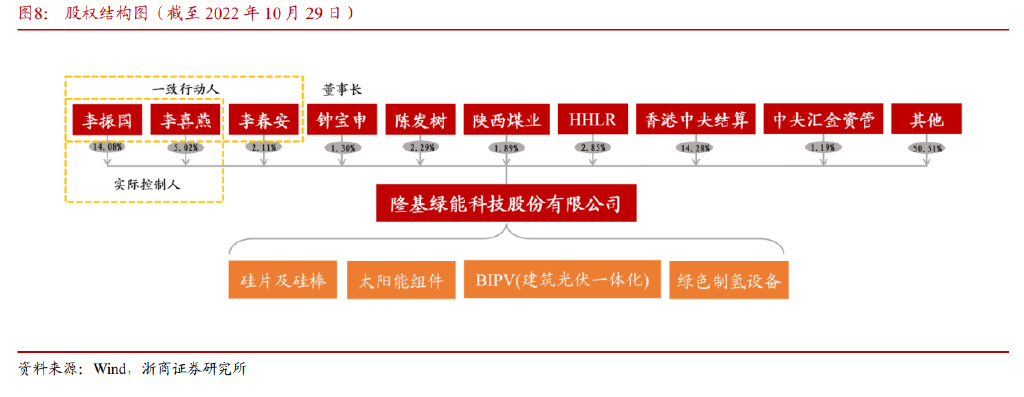 公司专注于为全球客户提供高效单晶太阳能发电解决方案,是全球太阳能单晶硅光伏产品领先制造商。公司主要从事单晶硅棒、硅片、电池和组件的研发、生产和销售,光伏电站的开发及系统解决方案的提供业务。公司已形成了从硅片、电池、组件到下游光伏电站应用的完整产业链。其中硅片、电池及组件业务是公司的核心业务,目前是全球最大的一体化组件制造商。公司拥有二十年硅片生产经验,由硅片生产企业向一体化太阳能科技公司转变。2000 年公司前身新盟电子科技有限公司成立,后逐步拥有了单晶硅、硅片生产能力;2014 年收购乐叶光伏科技,拓展电池、组件产能,打造一体化生产能力;2022 年公司电池技术不断突破,HJT 电池转换效率刷新世界纪录,HPBC 电池技术量产效率高达 25.3%,推出新一代光伏组件 HI-MO6。