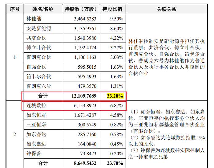 招股书显示,2020年4月,连城数控增资拉普拉斯。IPO前,连城数控持股16.87%,仅次于林佳继的19.6162%,是公司的第二大股东。