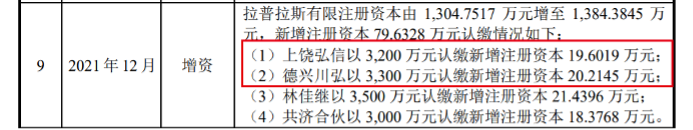 2021年12月,上饶弘信、德兴川弘分别以3200万元、3300万元认缴了拉普拉斯的部分新增注册资本。而这两家公司与晶科能源隶属于同一控股股东——晶科能源投资有限公司(以下简称:晶科投资)。