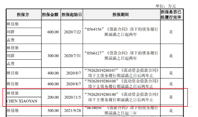 除此之外,CHEN XIAOYAN和拉普拉斯的交集并不多。招股书显示,2020年,CHEN XIAOYAN与林佳继共同为拉普拉斯担保了200万元借款。