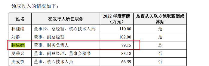 而担任财务负责人一职的林依婷,1996年出生,今年只有27岁,是公司实控人林佳继配偶CHEN XIAOYAN的表妹。