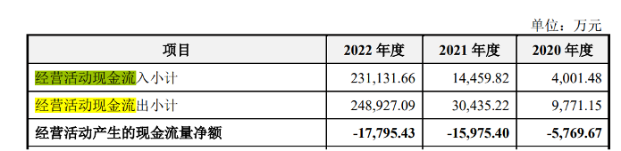 报告期内,拉普拉斯营收虽然快速增长,但经营现金流始终为负。2020年-2022年,其经营活动现金流净额分别为-5769.67万元、-1.60亿元、-1.78亿元。