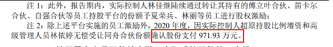 拉普拉斯表示,2020年度,因实际控制人林佳继超原持股比例增资和高级管理人员林依婷无偿受让同舟合伙份额确认股份支付971.93万元。