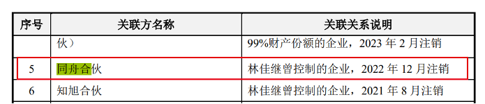 据悉,同舟合伙是林佳继曾控制的企业,于2022年12月注销。