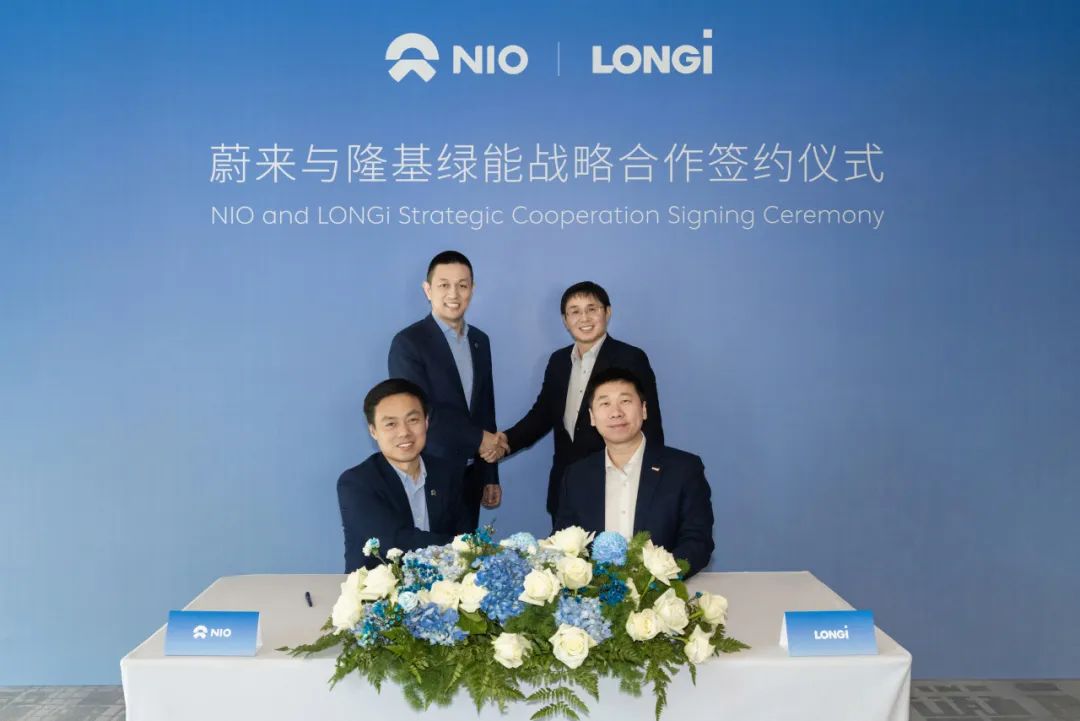 2024年1月3日,蔚来与隆基绿能联合宣布签署战略合作协议。双方将紧密合作并共同推动充换电站使用光伏发电绿色清洁能源,打造行业领先的光储充换一体站,在推进分布式光伏配合V2G车网互动、建立“出行碳中和”相关行业标准等方面展开合作,助力交通领域“碳达峰、碳中和”目标的实现。