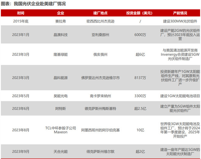 由于各家中资光伏企业赴美建厂的软硬条件各不相同,土地价格、设备价格、税费等等都不一样,成本肯定也不尽相同。但除隆基以外,其它几家企业平均下来每GW投资3300万-5000万美元。