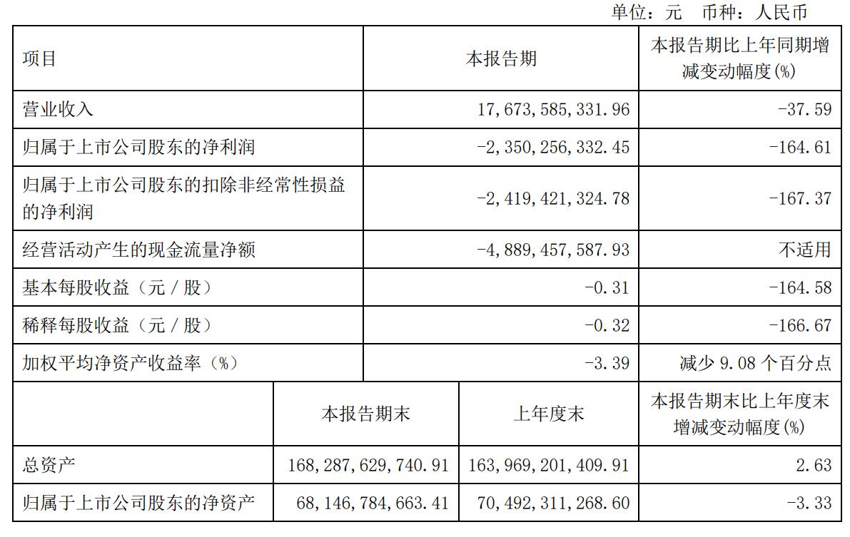 隆基绿能2024年第一季度净亏损为23.5亿元,扣非后净亏损为24.19亿元。
