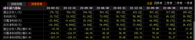 隆基绿能在今年一季度就已深陷亏损。当期公司实现营业收入176.74亿元,同比下降37.59%;实现归母净利润-23.5亿元,同比下降164.61%。系公司上市以来最差单季度表现。