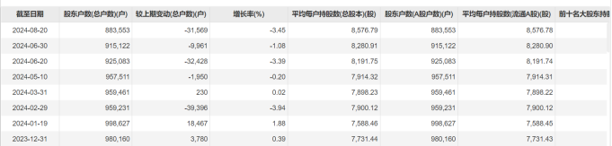 记者注意到,隆基绿能的股东户数已从2023年末的98.02万户减少至88.36万户(截至8月20日),对应了近10万散户的割肉出局。