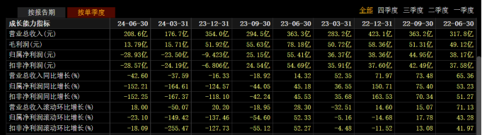 今年一、二季度,隆基绿能分别实现营收176.74亿元、208.55亿元,对应归母净利润分别为-23.5亿元、-28.93亿元。Q2营收环比增长的同时利润水平环比下降了23.1%。