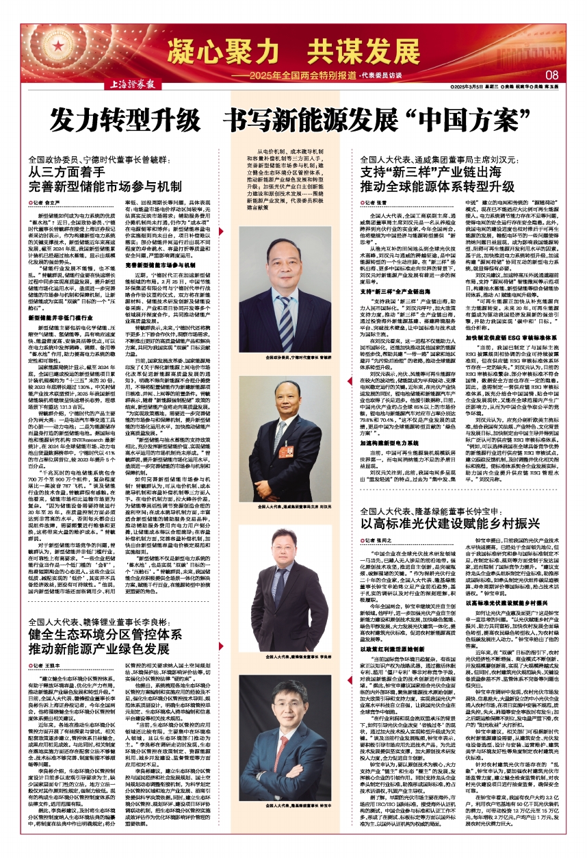今年全国两会,钟宝申继续关注自主创新领域。他呼吁,进一步加强光伏产业自主创新能力建设和原创技术发展,加快绿色氢能、绿色甲醇发展,大力发展光伏建筑一体化,提高农村建筑光伏标准,促进农村新能源高质量发展等。