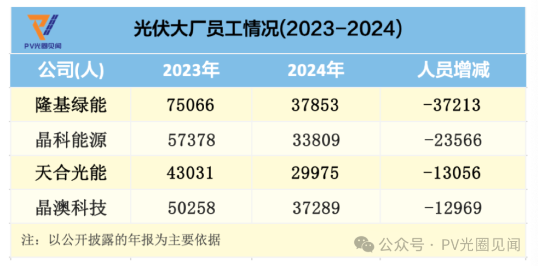 根据刚刚收官的2024年年报,光伏大厂的营收均呈现不同程度的下降,净利减少甚至亏损,当财务状况往下,企业的员工大幅减少(裁员)几乎难以避免。