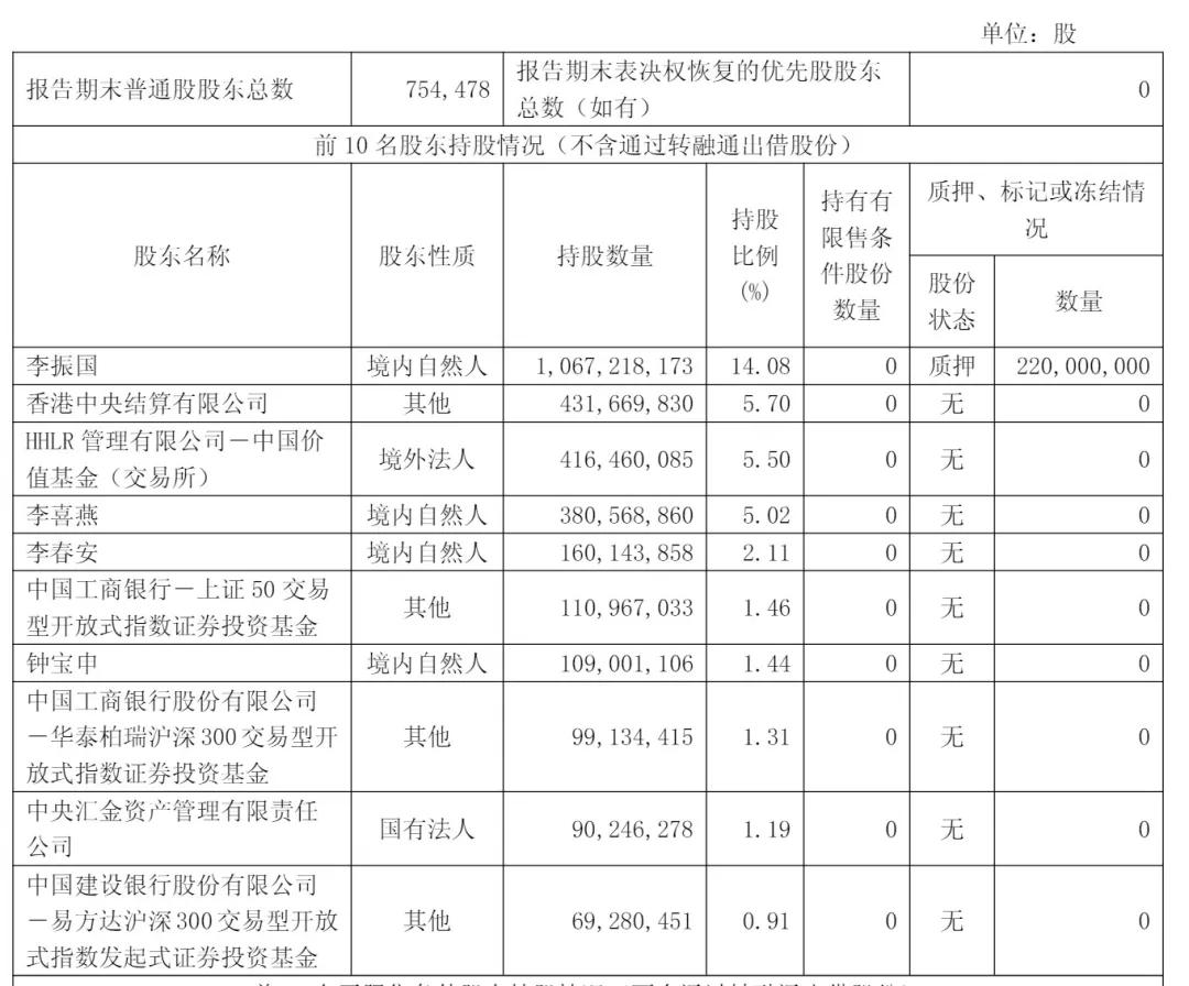 目前高瓴仍是隆基绿能前三大股东之一,截至2025年3月31日,李振国持股14.08%,香港中央结算有限公司持股5.7%;