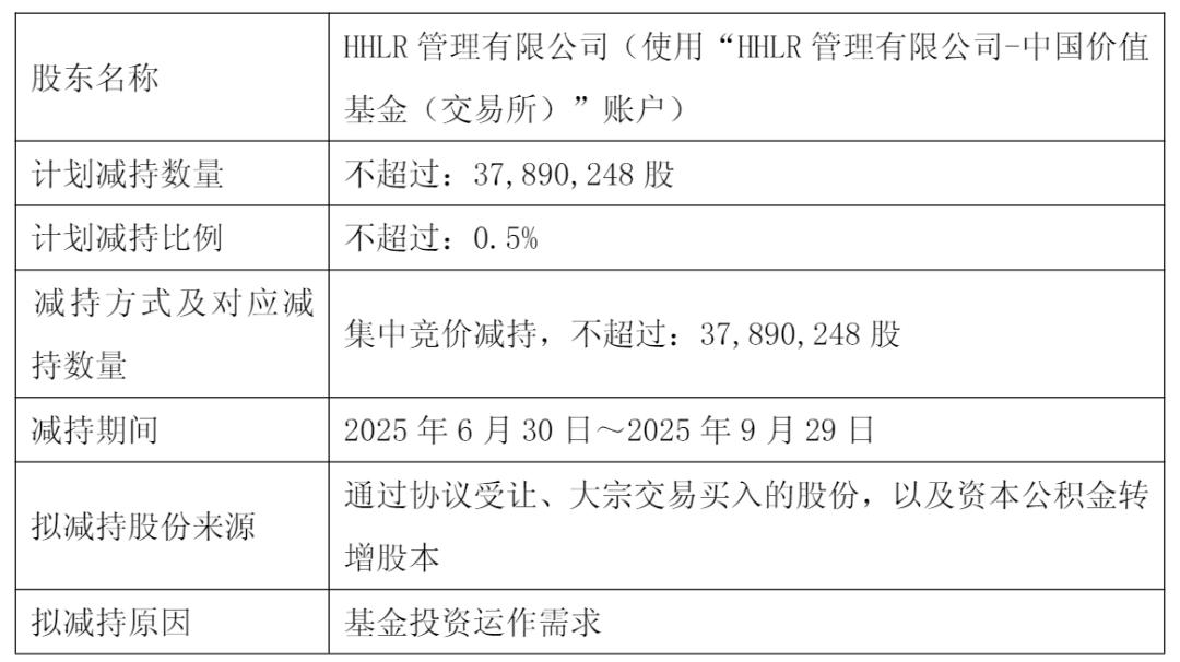 隆基绿能科技股份有限公司(证券代码:601012 证券简称:隆基绿能)今日发布公告,称高瓴HHLR拟在2025年6月30日到2025年9月29日进行减持,减持不超过37,890,248股,减持比例不超过0.5%。