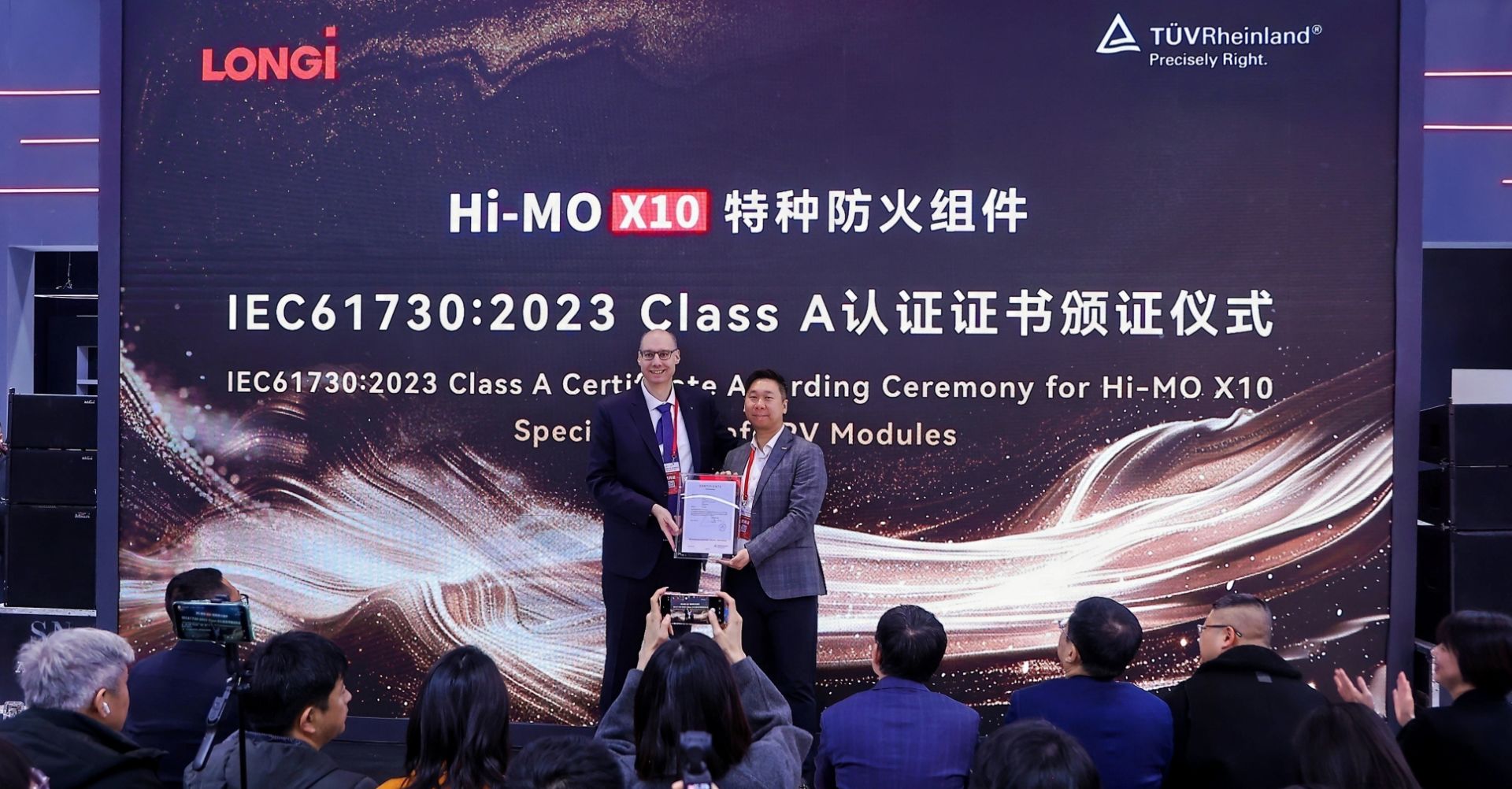 据了解,国际知名第三方认证机构德国莱茵TüV为Hi-MO X10颁发了国内首个完整组件Class A级防火认证。这份认证的特殊之处在于:它不是仅对单块送样组件负责的“检测报告”,而是对每一块量产组件负责的“认证证书”。