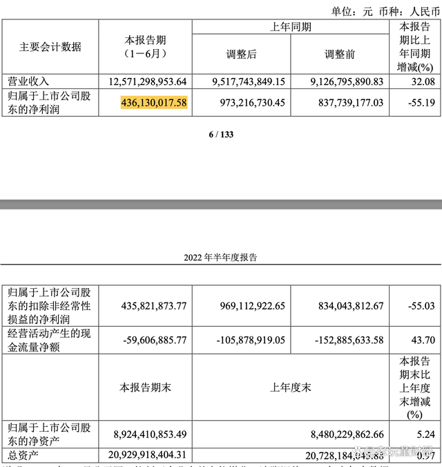 上半年,公司实现营业收入约125.71 亿元,同比增加32.08%,主要是因为:主要产品焦炭及化工产品价格同比增加;公司实现归属上市公司股东的净利润约4.36 亿元。与追溯调整后同比下降 55.19%,主要是因为是本期原材料精煤价格增长过快,远大于焦炭销售价格的增长,主要是产品焦炭毛利率同比下降。