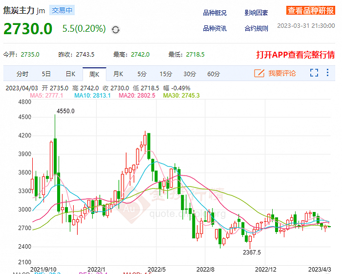 焦炭期货价格走势。图片来源:金投网
